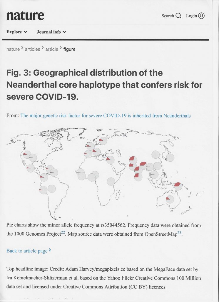 Svante Pääbo, The major genetic risk factor for severe COVID-19 is inherited from Neandertals, Nature, September 2020.