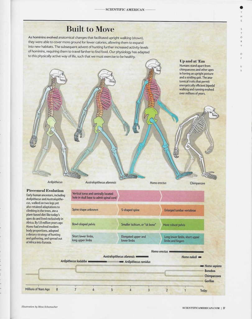 Por ser bípede e caçador recolector, ao longo do tempo criou um padrão de fisiologia com necessidade de grandes caminhadas e atividade física, associado à acumulação de gordura para os tempos de fome. Isto está impresso no nosso genoma, e é por isso que ao contrário dos símios temos de ter uma atividade física muito intensa para nos protegermos das doenças cardiovasculares e da obesidade.